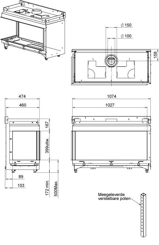 Se suministra con mando a distancia con encendido remoto, 2 rejillas para salida de aire de convección y puerta para registro.