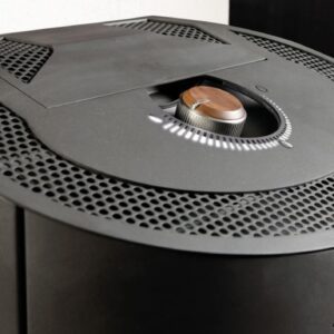Clou: Al igual que su diseño, el concepto de funcionamiento completamente nuevo de la Clou Pellet también es inusual: Un mando giratorio sirve para poner en marcha el control automático, elegir el nivel de potencia y también para volver a apagar la estufa. Más sencillo imposible.