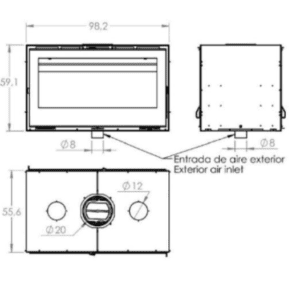- Entrada de aire exterior opcional para la combustión.
