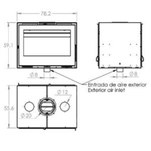 - Entrada de aire exterior opcional para la combustión.