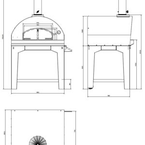 Horno con cámara de cocción de 60×80 cm. Dotado de práctico carrito en acero inox con plano de apoyo, ruedas y gancho porta útiles, con plancha leñera, utensilio para reavivar el fuego, chimenea y sombrerete, puerta para cerrar la boca del hogar. La base del fuego está realizada en cerámica refractaria de alta calidad homologada para uso alimentario. La estructura interior es de acero inoxidable mientras que la exterior es de acero electrocincado tratado con pinturas a alta temperatura para máxima resistencia del calor, a la intemperie y al óxido. El aislamiento del horno está realizado en lana de roca natural que permite conservar el calor de forma más eficaz evitando así que la estructura exterior alcance temperaturas demasiado altas.