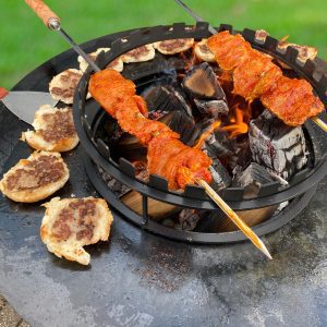 Prepara la comida más rica con las BonFeu BonSkewers. En combinación con el aro para brochetas BonFeu, podrás cocinar tus platos directamente encima del fuego. Coloca el aro sobre la BonBiza o en el centro del BonBowl con una plancha adecuada y podrás preparar fácilmente tu comida con las brochetas. Llénalos de verduras, carne u otros ingredientes sorprendentes. Las brochetas están hechas de acero y tienen un mango cómodo para girarlas fácilmente. Por supuesto, las brochetas también se pueden utilizar con cualquier otro aro para brochetas.