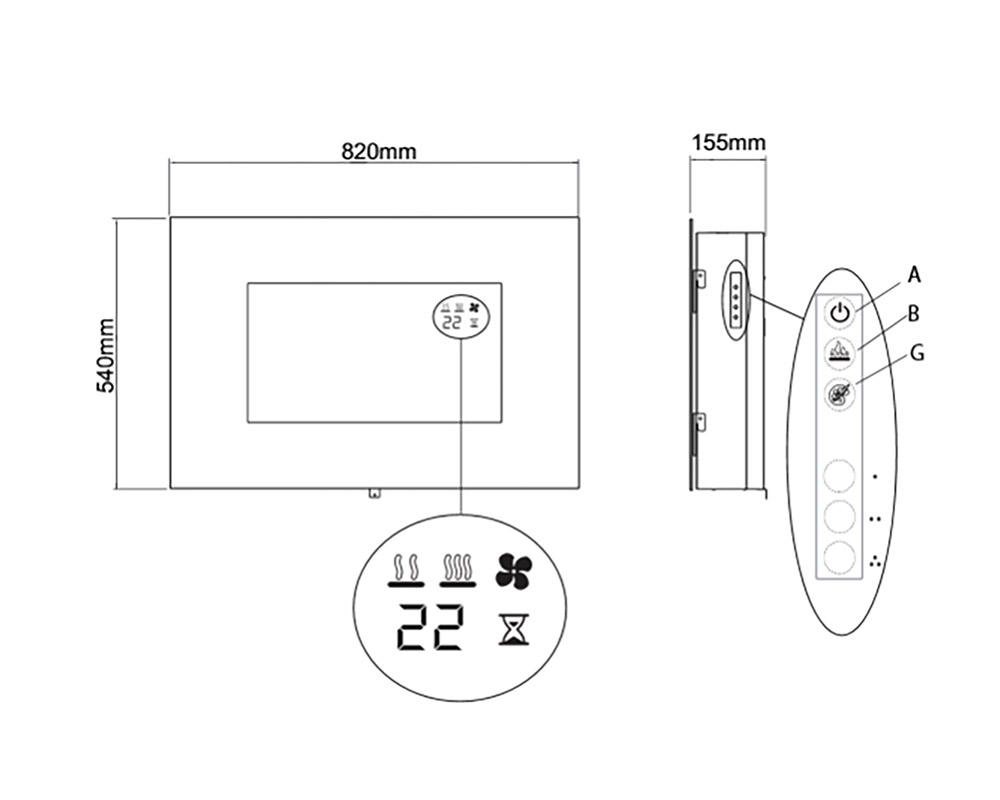 Chimenea eléctrica dotado con el sistema un sistema de iluminación que incluye la posibilidad de variar los colores de las luces. Esta chimenea está pensada para colgar en la pared.