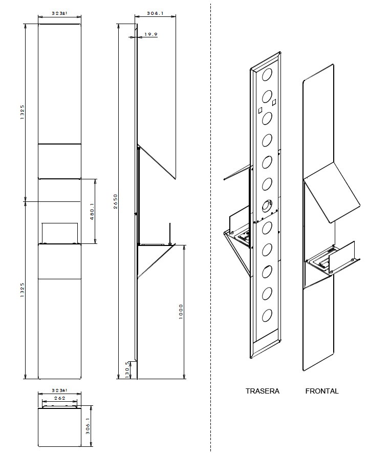 Dimensiones | 33 x 30 x 265 o 33 x 30 x 238 |