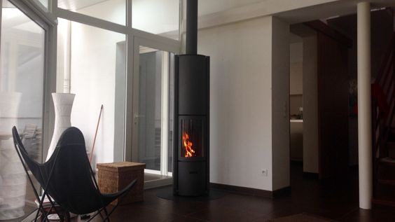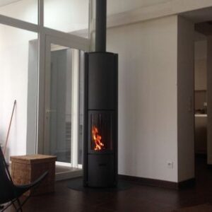 Estufa de leña exclusiva con sistema giratorio de 360º.