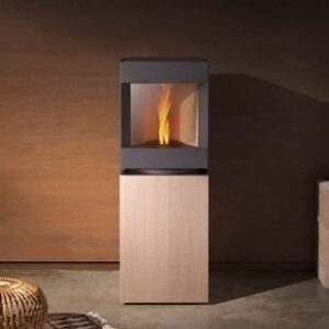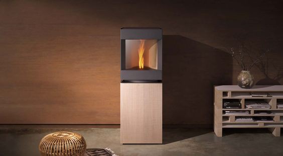 Estufa de pellet de diseño unico, cuenta con una tecnologia patentada para una llama escultural.