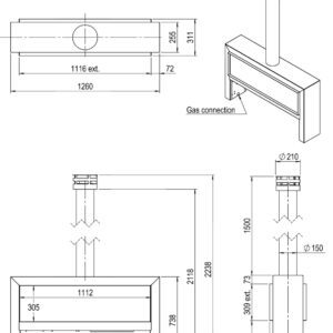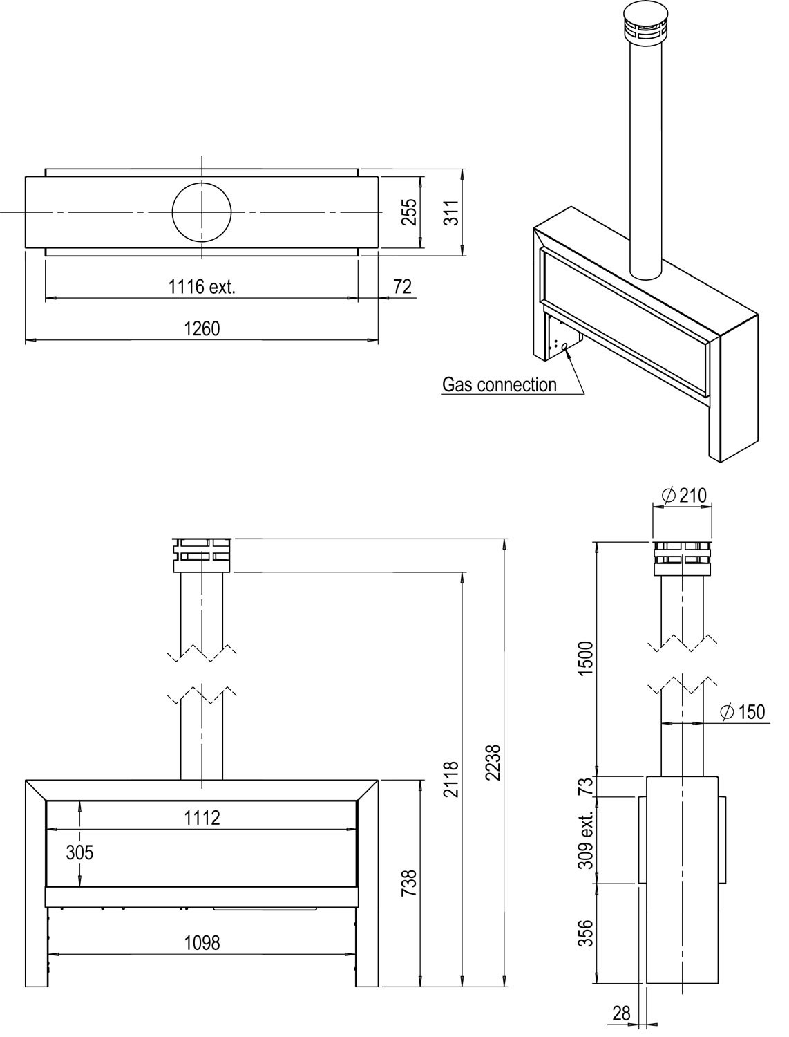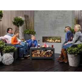Moderno hogar a gas para exterior sin marco. Para utilizar como estufa o como hogar, y también se puede colocar como hogar de visión frontal o como hogar túnel.