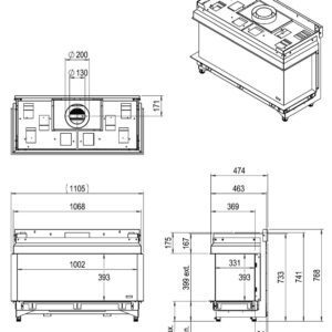Todos los aparatos de la línea Smart de Faber se suministran sin marco, con efecto leña, 2 rejillas para salida de aire de convección, puerta para registro y quemador Flat Burner.